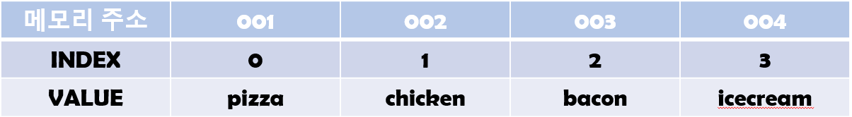 - 아래표에서 특정 인덱스의 값을 알고 싶은데 그 인덱스에서 접근해서 값을 읽으면 된다.
